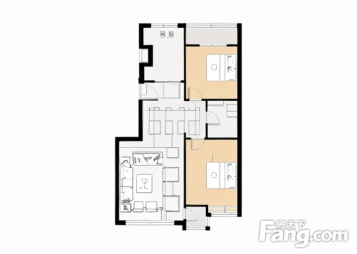 户型齐全,主打户型方正,明厨,主卧朝南二居