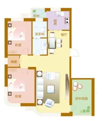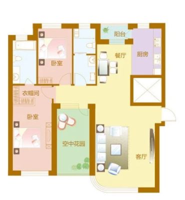 户型齐全,主打户型方正,明厨,明卫,客厅朝南二居
