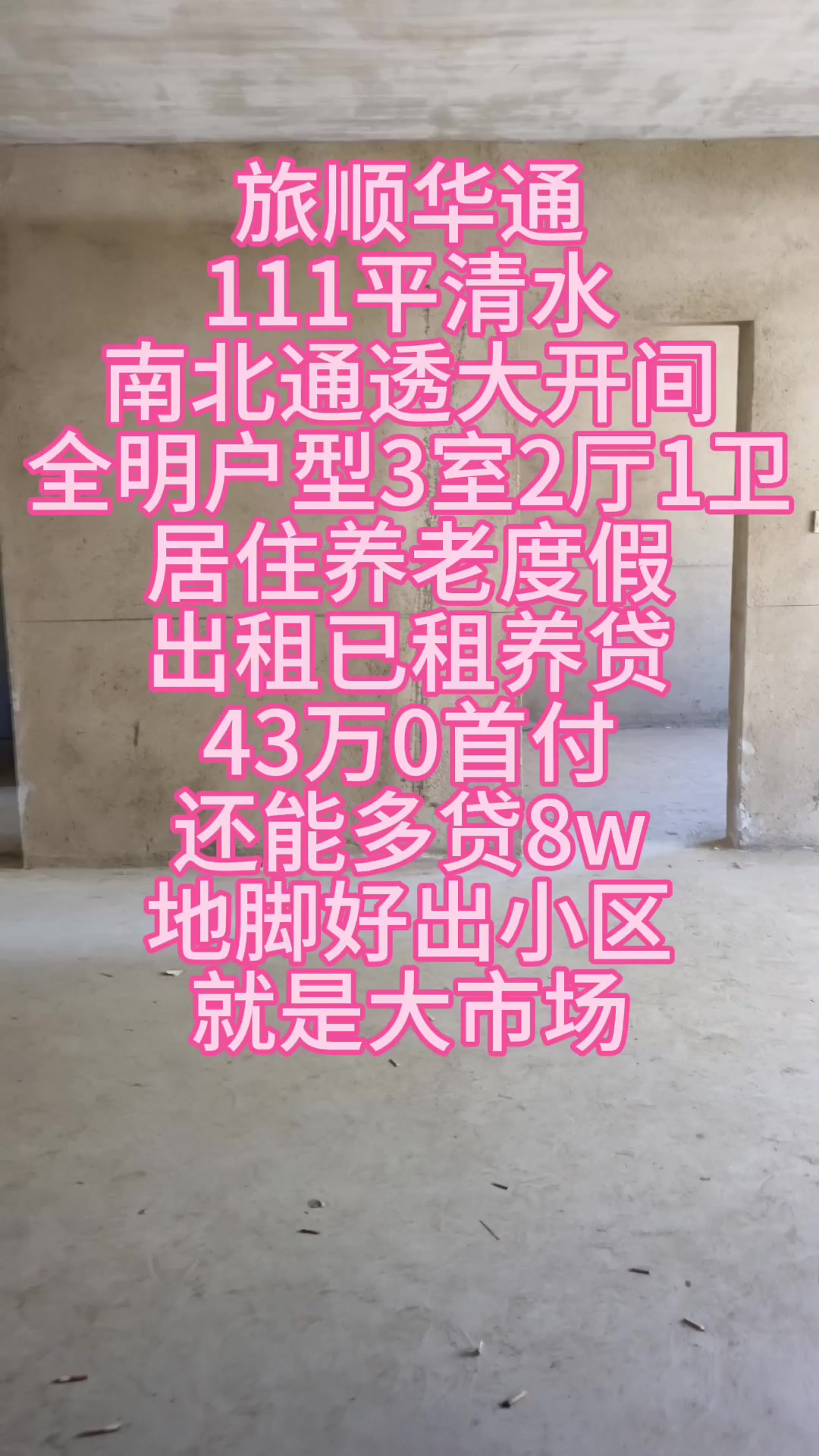 华通位于美丽的旅顺开发区临海小区海上风光尽收眼底清水南北通透全明户型大开间双南一北卧居住养老度假出租以租养贷出小区就是大小市场公交站博阳小学可以享受山水风景去海边也比较近直径约800米就可以享受海风没事还可以赶海寻求人生乐趣世界和平公园还有很多娱乐设施也可以周末一家人去游玩漫步孩子玩耍的乐园户型好采光好进市场交通便利社区医院 医院 药房 各大银行 超市 商城 果蔬 大商购物广场 轻轨 都近在咫尺