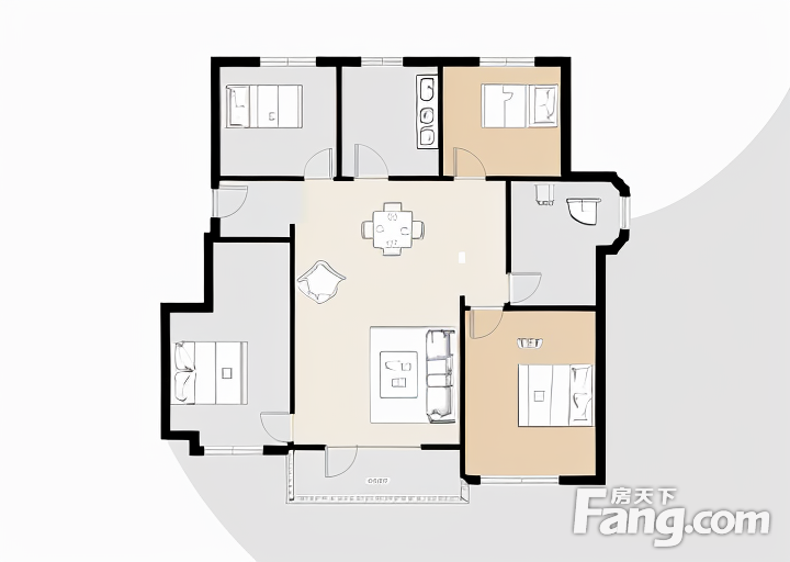 户型齐全,主打独立衣帽间,明卫,明厨,客厅朝南,全明格局三居