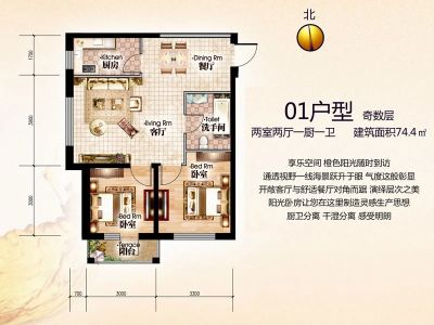 户型齐全,主打户型方正,动静分离一居