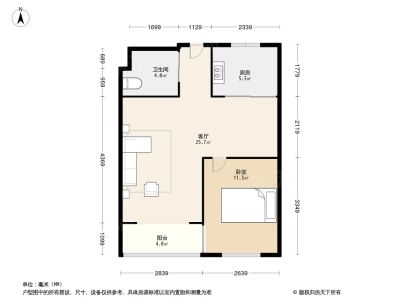 户型方正,标准的一室一厅南向小户型,交通方便,地铁