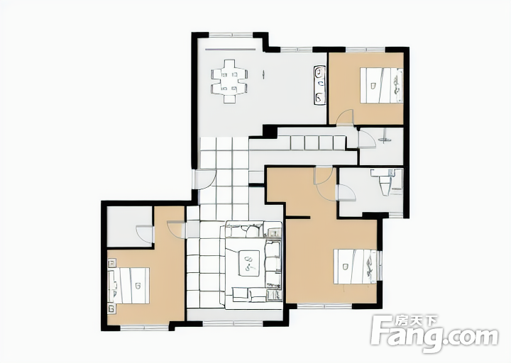 户型齐全,主打南北通透,动静分离,卧室朝南,L型厨房,干湿分离三居