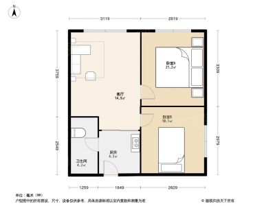 万瑞达国际公馆 2室1厅 南