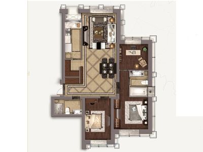金地云锦户型主要有57平-150平的客厅朝南的一居 、90平-150平的明厨,客厅朝南,双卧朝南,主卧朝南的二居 、94平-150平的客厅朝南的三居 。