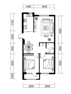 户型齐全,主打明厨,客厅朝南,主卧朝南二居