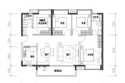 户型齐全,主打户型方正,动静分离三居