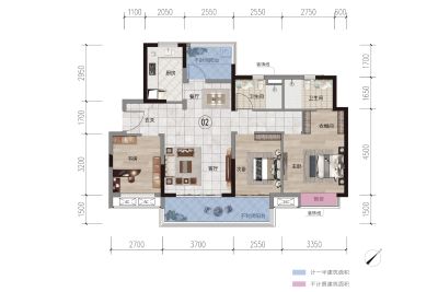 融创滨江粤府户型主要有104平-106平的户型方正,动静分离的三居 、94平-95平的户型方正,动静分离的二居 。
