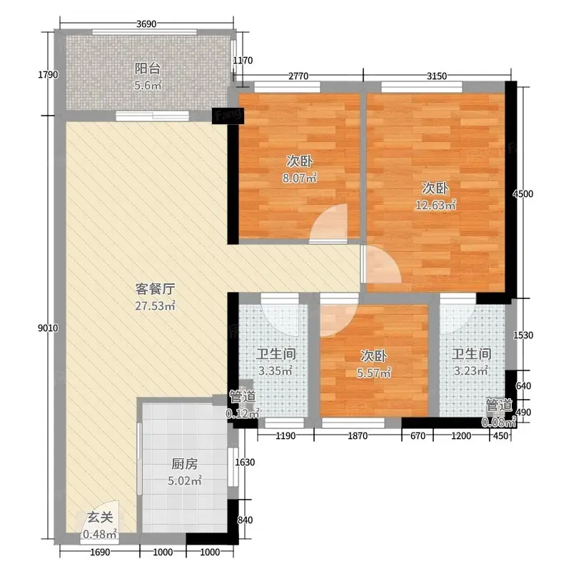 2室1厅2卫