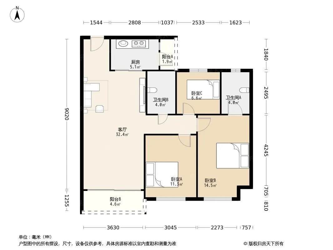 *获取完整户型报告,同时会有免费语音讲解服务