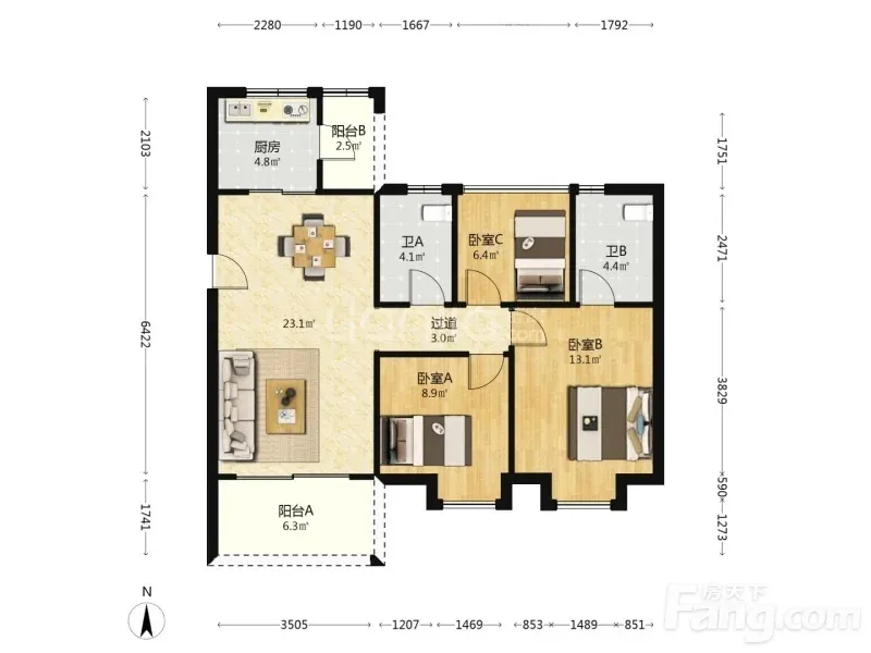3室1厅2卫