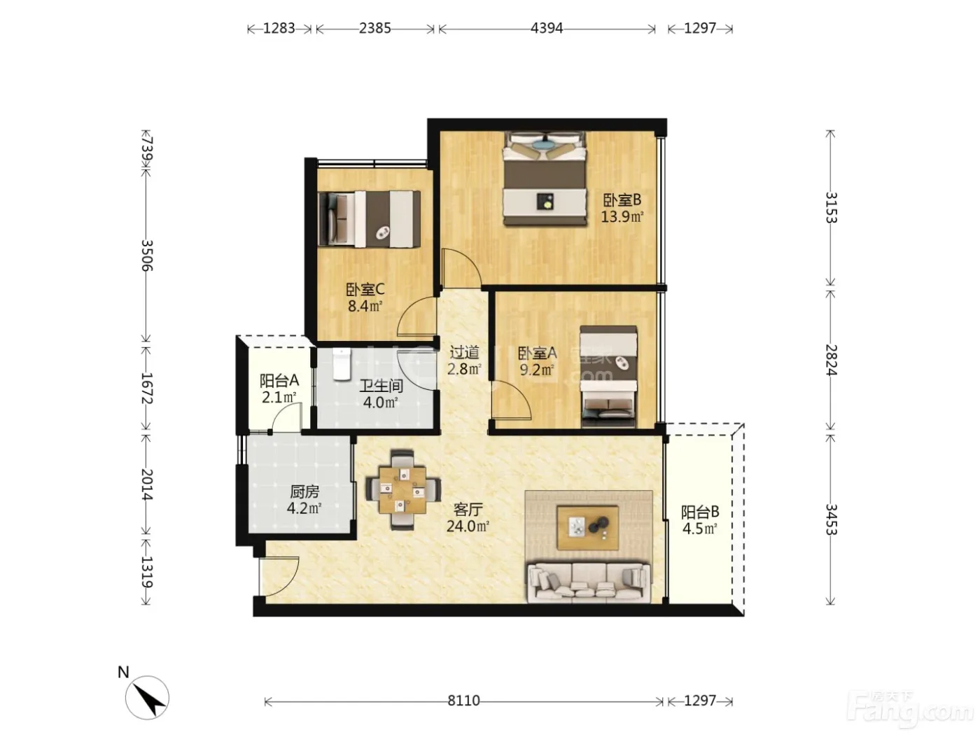户型齐全,主打户型方正,明厨,明卫,双阳台三居