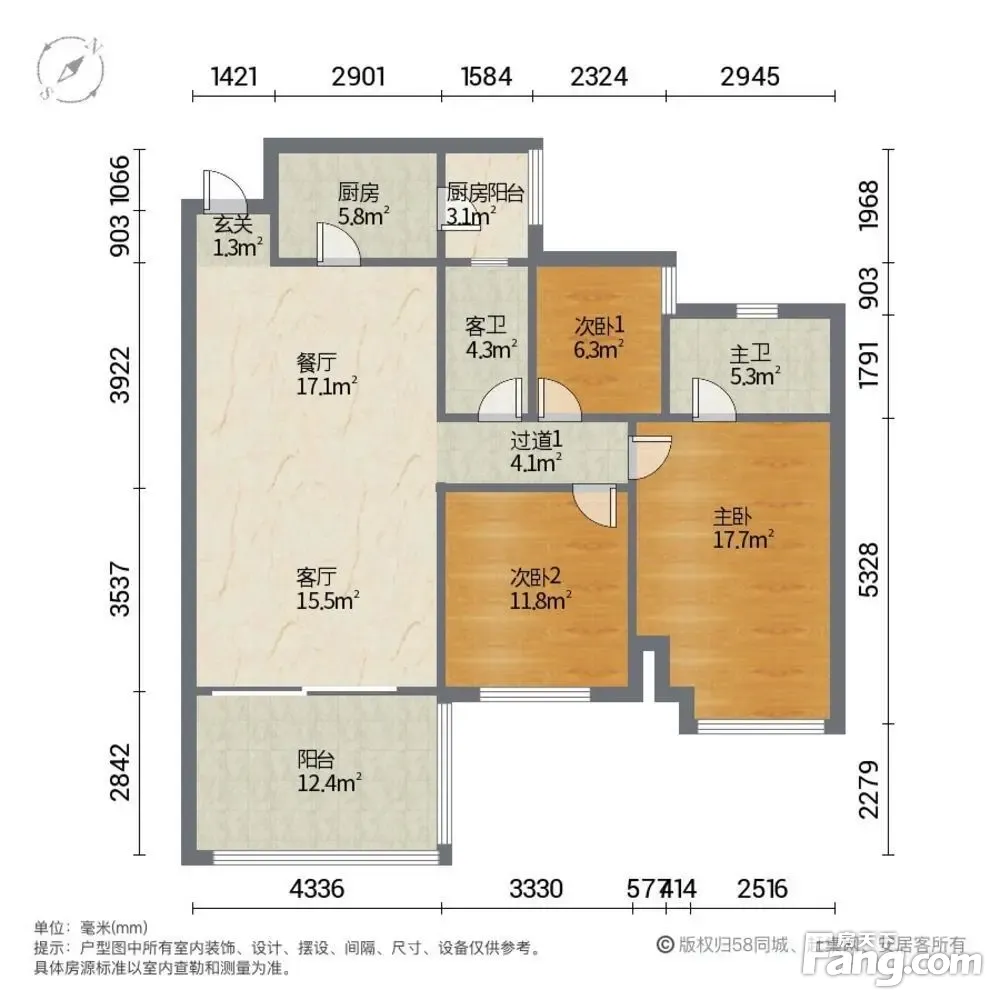 户型齐全,主打南北通透,双阳台二居