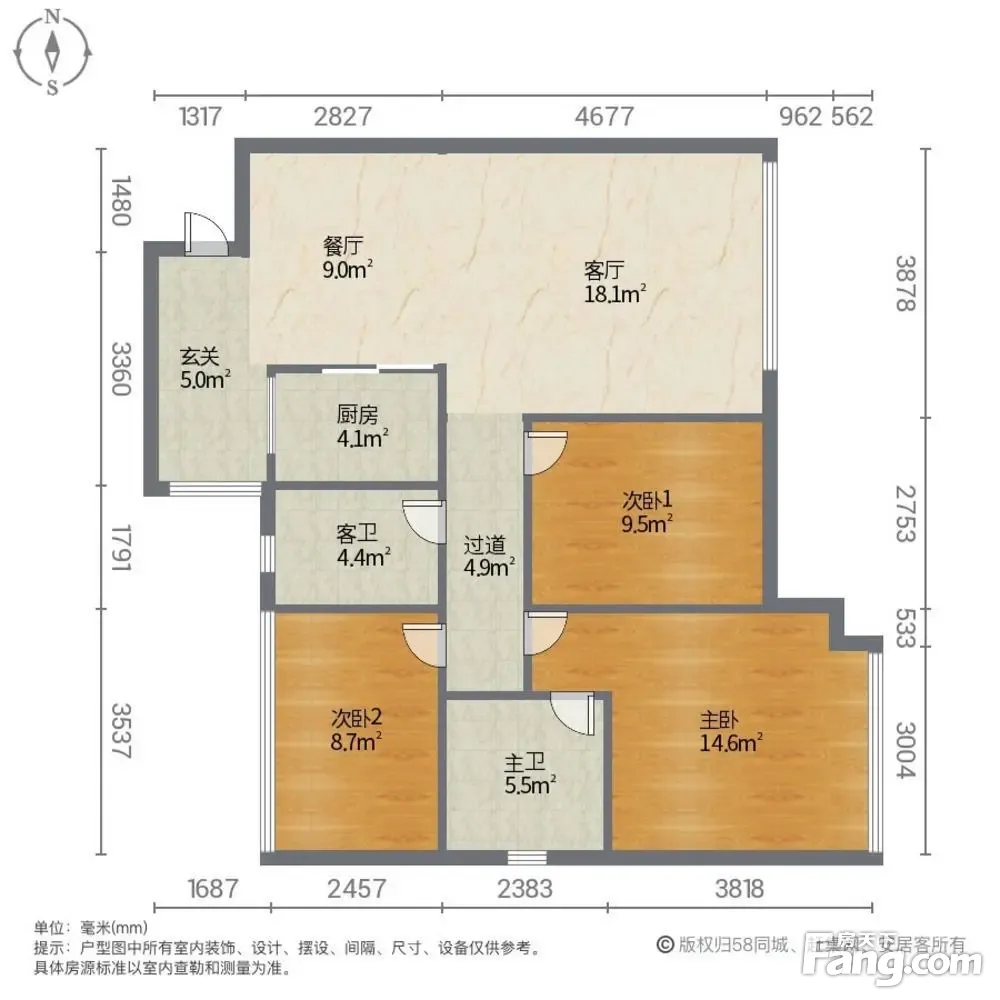 户型齐全,主打明卫,双卧朝南三居