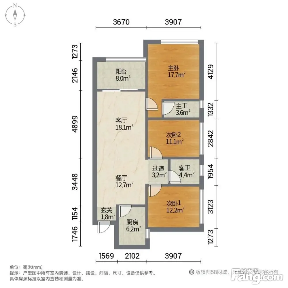 户型齐全,主打明卫,明厨,客厅朝南,全明格局,双阳台,主卧朝南三居