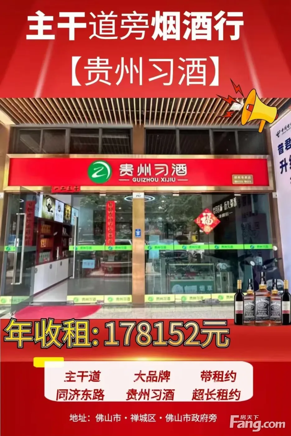 市中心6000户大型成熟社区,小区基本已经满住 一线临街双向6车道,铺位前有停车位 商铺面积:56.3方 一口价:元 租金:130 元 月:7319元 贵州习酒总店,租约稳定长租约 户型方正,6米层高,可以做隔层 独立产权红本,现铺现证,即买即