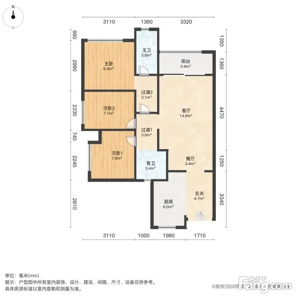 户型齐全,主打南北通透,全明格局三居