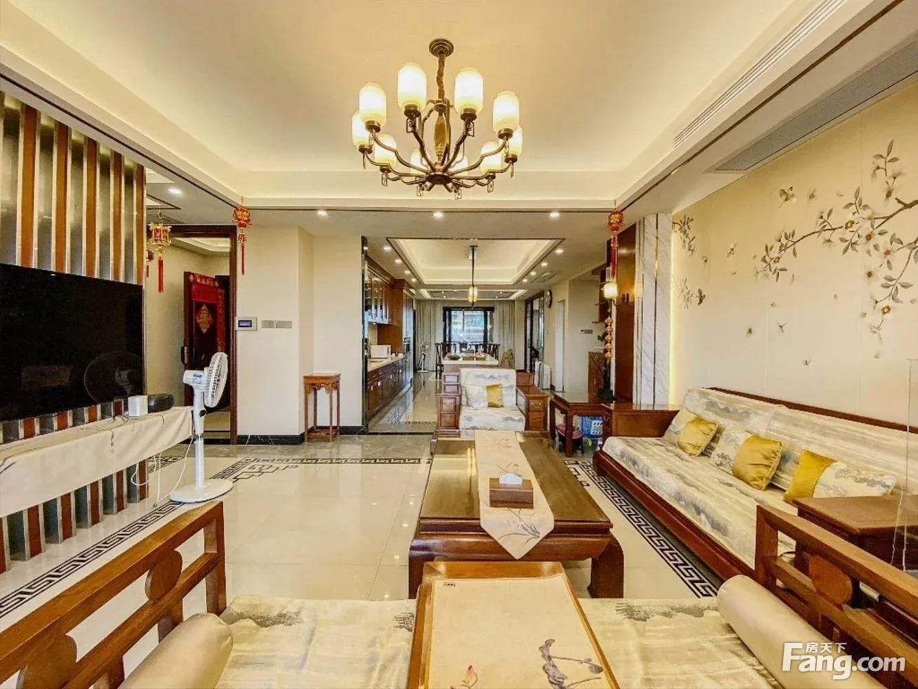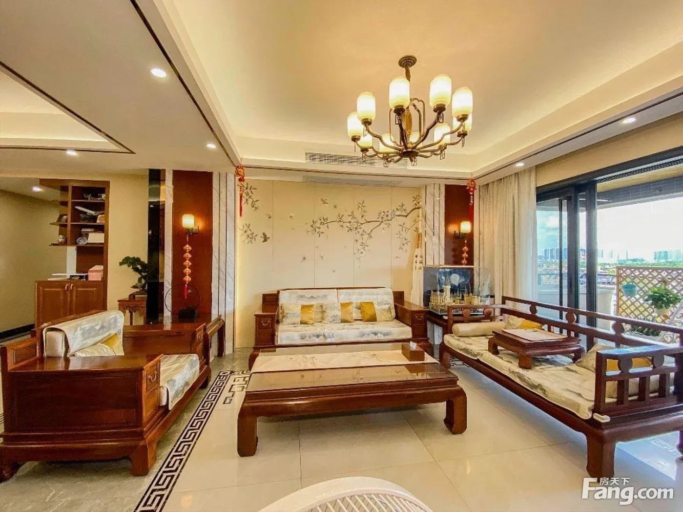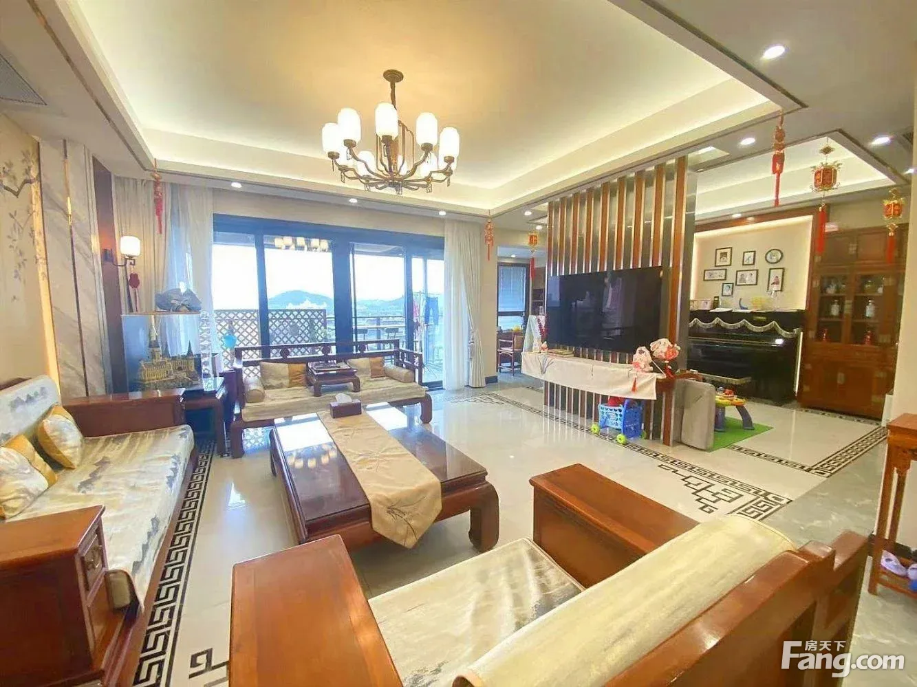 华侨城天鹅湖头排景观平层奢装新中式风全屋 紫檀还送2车位