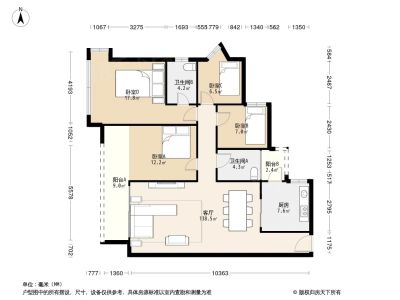 房屋户型方正,景观布局合理,设计实用,空间舒适,格局优越,采光通风良好