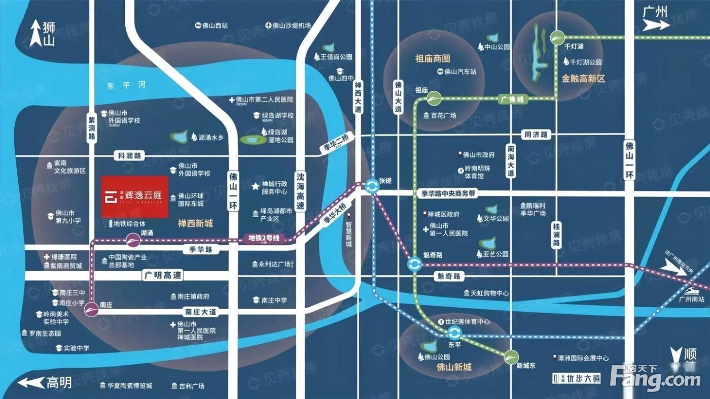 交通:【交通配套】距地铁2号线湖涌站约600米,快速抵达广州南站枢纽中心,更有地铁7号线(规划中)在侧,双地铁汇聚,肇启广佛同城的世界都会生活。 :TOD综合体项目、中国陶瓷总部基地 景观:绿岛湖湿地公园 交通:佛山地铁2号线湖涌站、佛清从高速口 公园:绿岛湖湿地公园 医院:佛山绿康医院、市二院绿岛湖院区(建设中) :佛山外国语 、佛山第九 、南庄