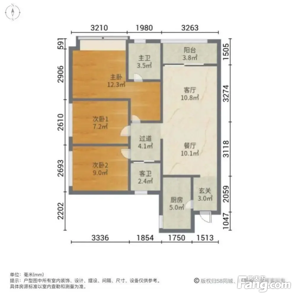 户型齐全,主打客厅朝南,主卧带卫三居