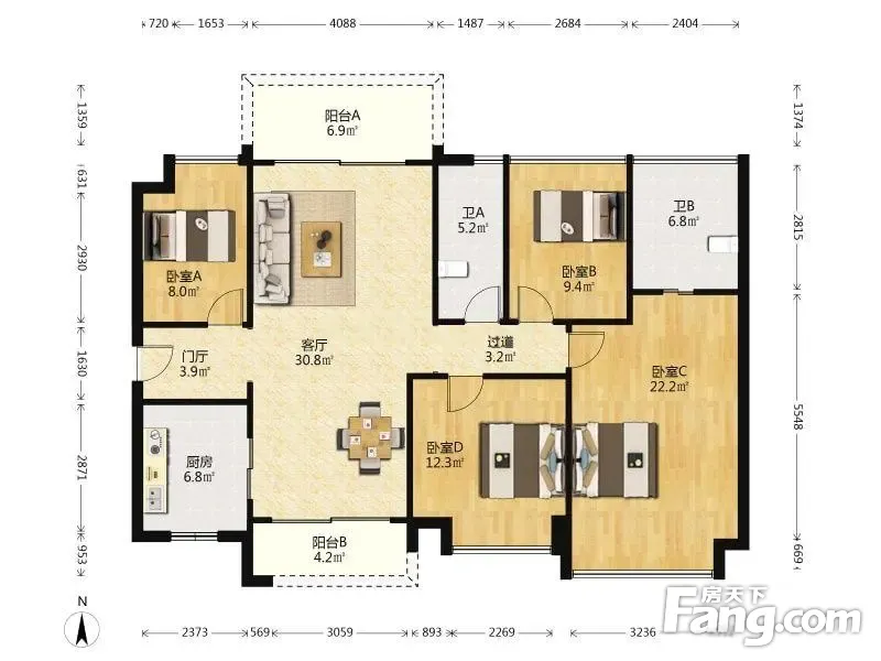户型齐全,主打南北通透,全明格局,高附赠空间四居