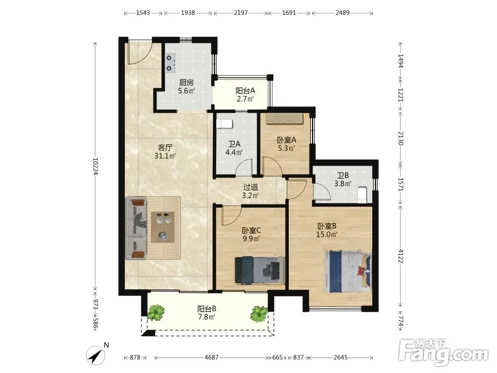 3室2厅1卫