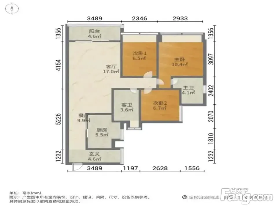 户型齐全,主打明卫,双卧朝南三居