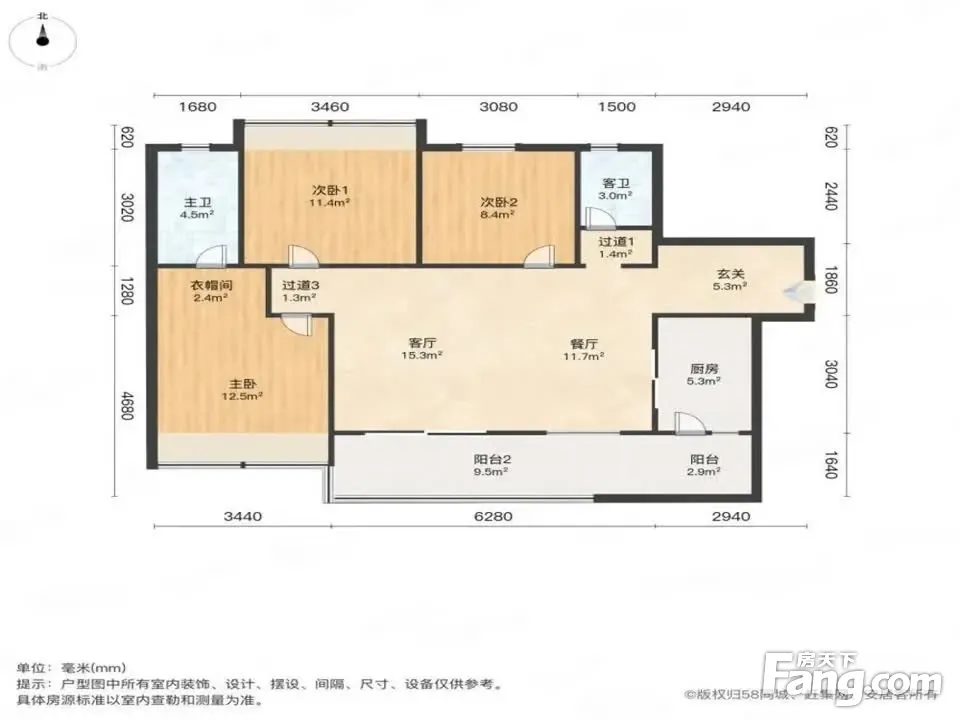 户型齐全,主打明卫三居