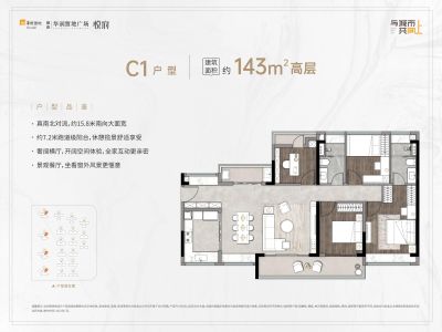 顺德悦府户型主要有126平-143平的南北通透,全明格局的四居 、143平-143平的南北通透,大面宽阳台的三居 。