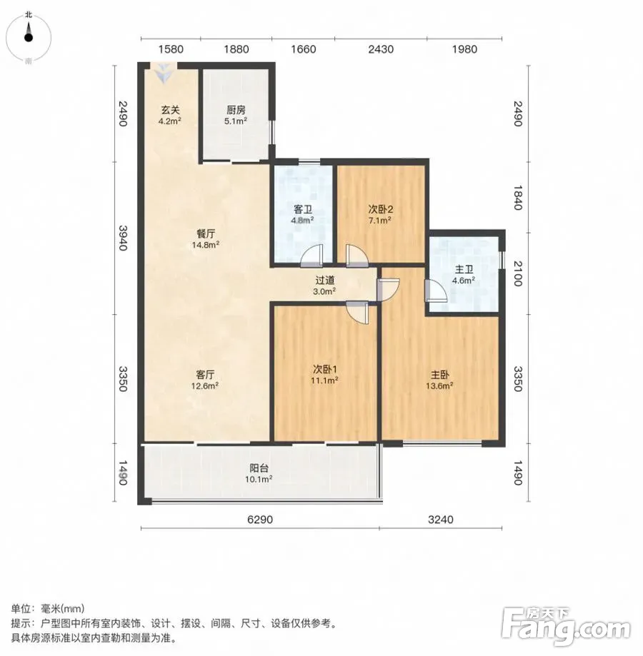 户型齐全,主打南北通透,全明格局三居