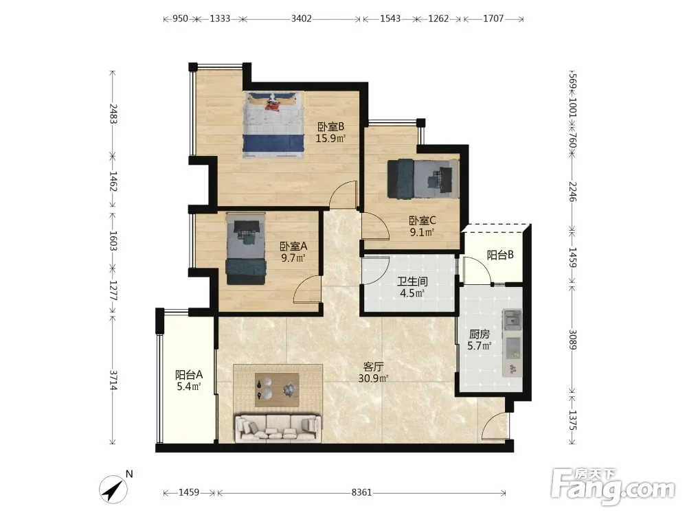 3室2厅1卫