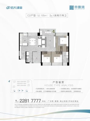 远大建管·帝景湾户型主要有105平-140平的南北通透,全明格局的四居 、85平-95平的南北通透,全明格局的三居 。