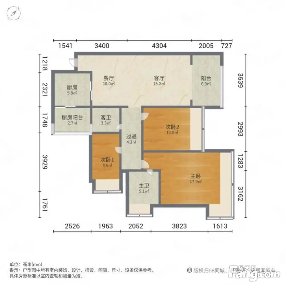户型齐全,主打明卫,客厅朝南,双卧朝南,主卧朝南三居
