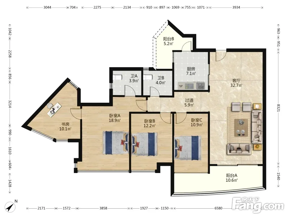户型齐全,主打明卫,客厅朝南,双卧朝南,主卧朝南三居