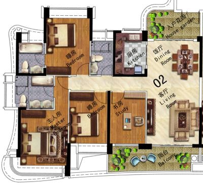 佛山雅居乐花园户型主要有89平-156平的明卫,客厅朝南,双卧朝南,主卧朝南的三居 、171平-250平的户型方正,明厨,明卫,双阳台的四居 、215平-396平的户型方正,明卫,主卧朝南的五居 。