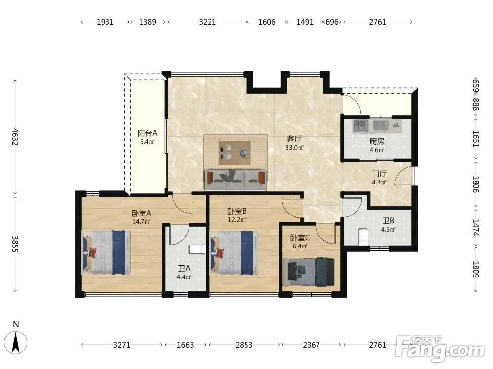 3室2厅1卫