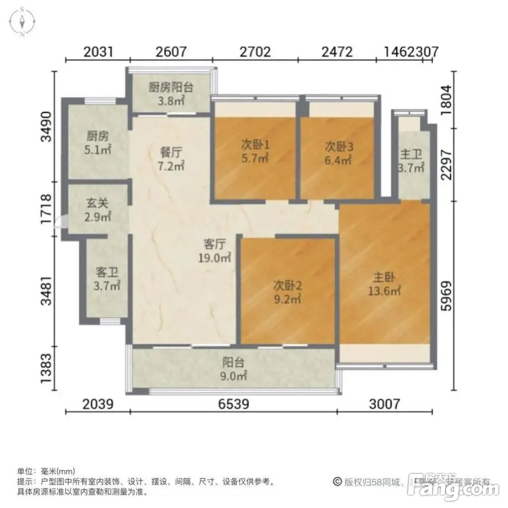 户型齐全,主打全明格局,户型方正,客厅朝南,L型厨房,厨卫不对门,大面宽阳台三居