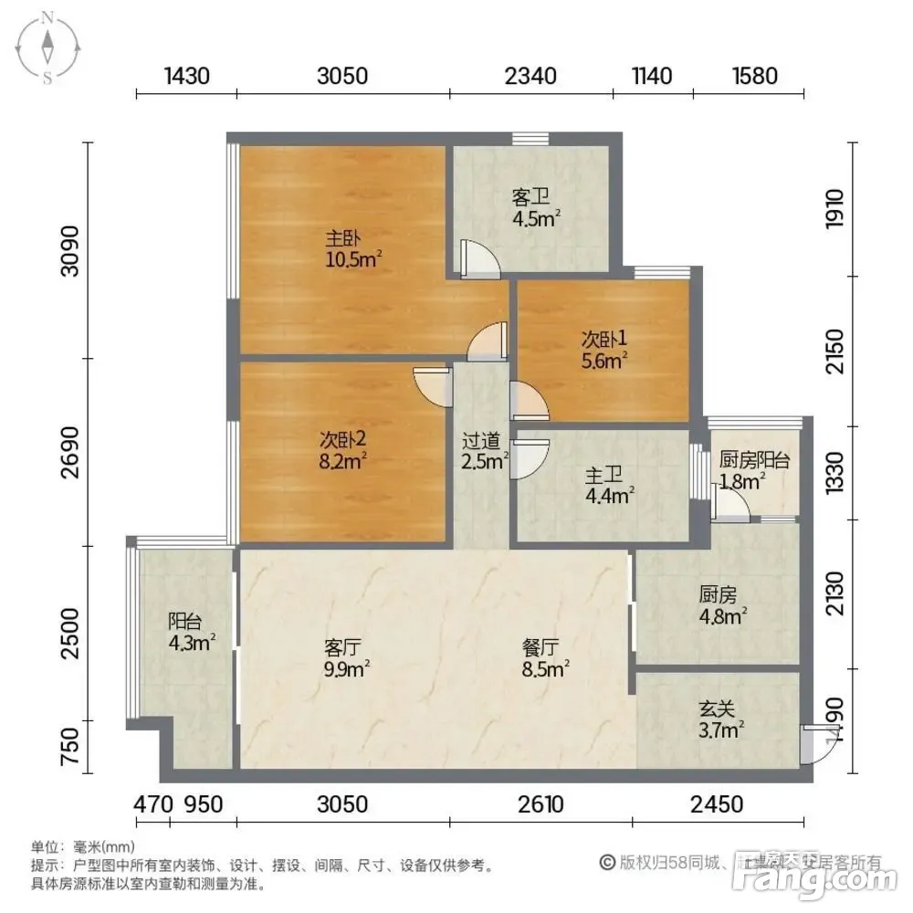 *获取完整户型报告,同时会有免费语音讲解服务