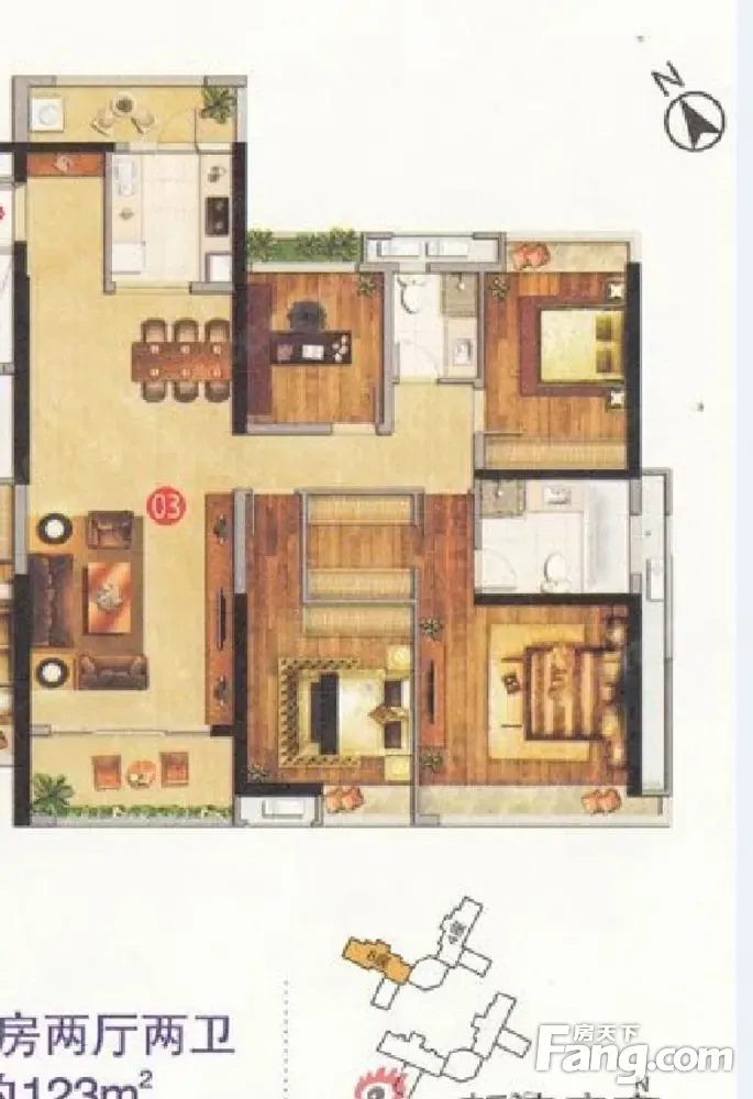 户型齐全,主打户型方正,动静分离二居