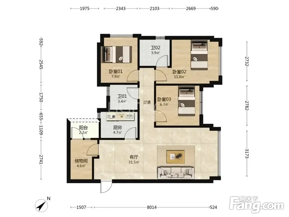 3室2厅1卫