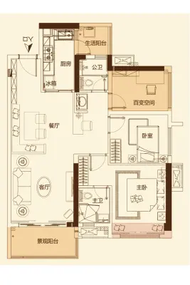 房屋户型方正,景观布局合理,设计实用,空间舒适,格局优越,采光通风良好