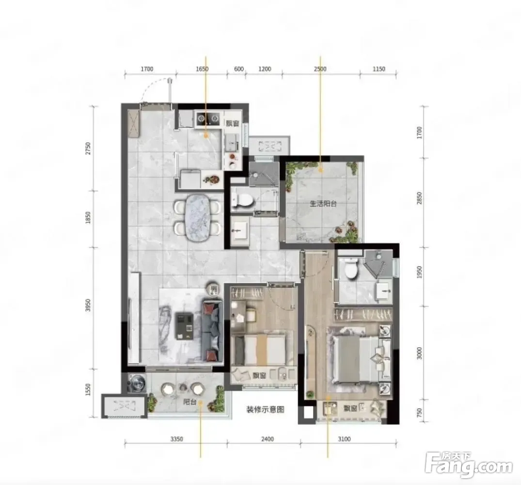 房屋户型方正,景观布局合理,设计实用,空间舒适,格局优越,采光通风良好