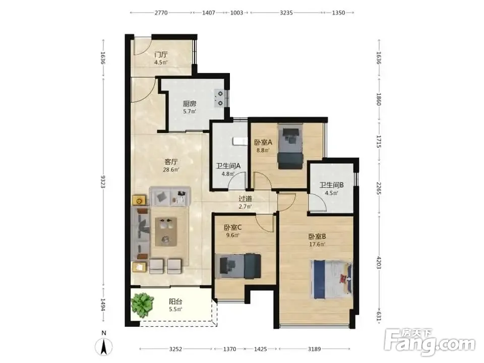 3室2厅1卫