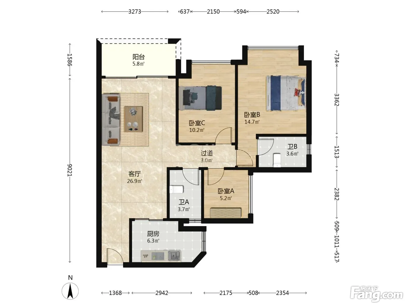 3室2厅1卫