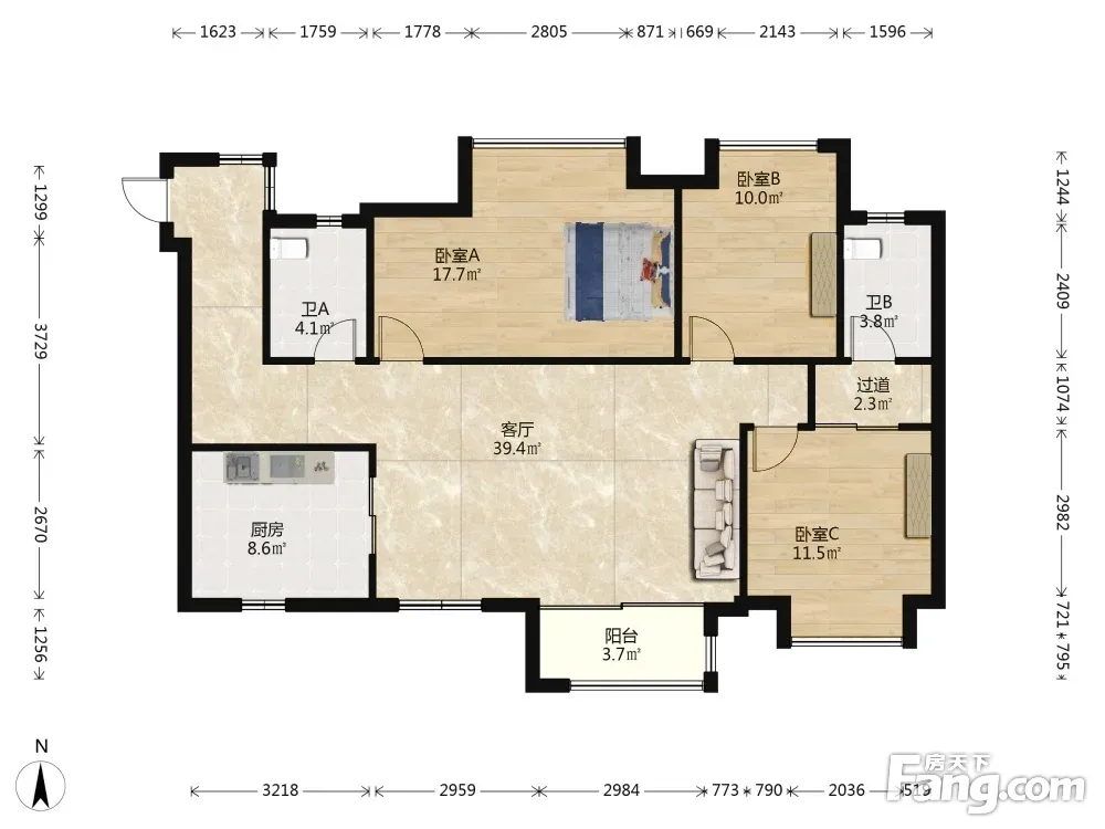 3室2厅1卫