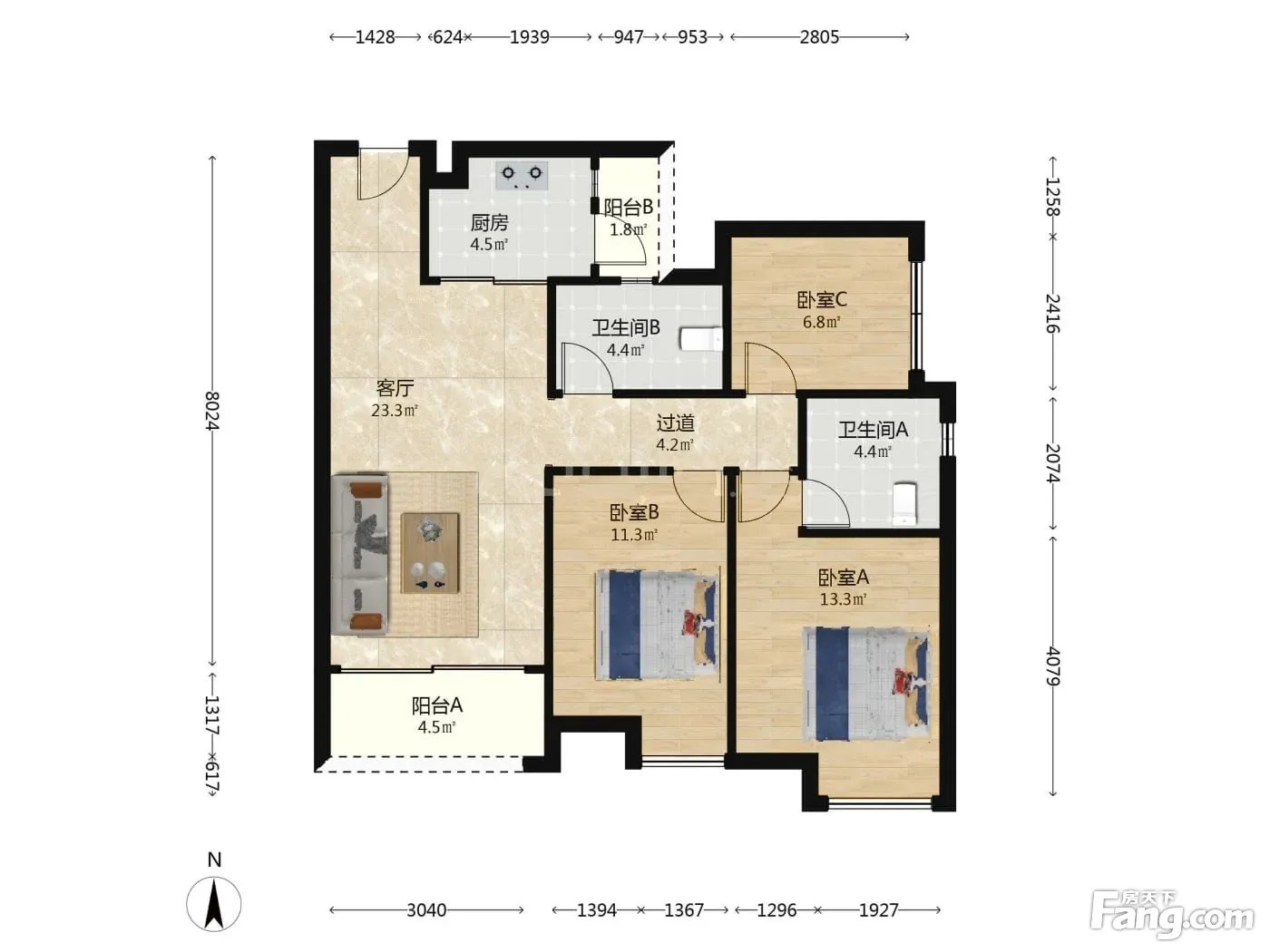 3室2厅1卫