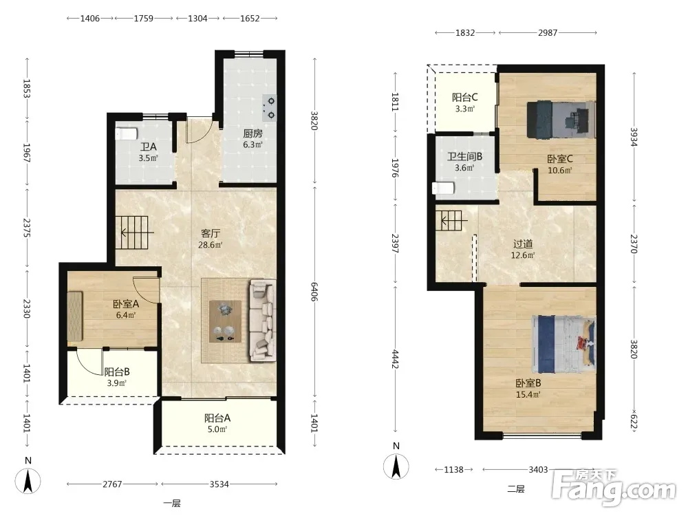 世茂望德 全新毛坯 小区中间位置 复式4房