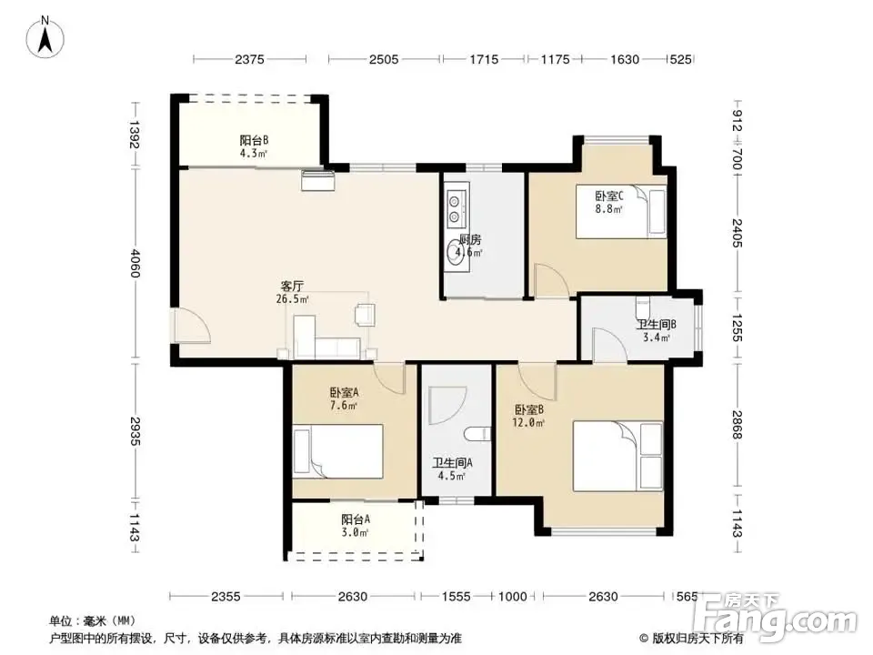 户型齐全,主打明卫,双阳台,双卧朝南三居
