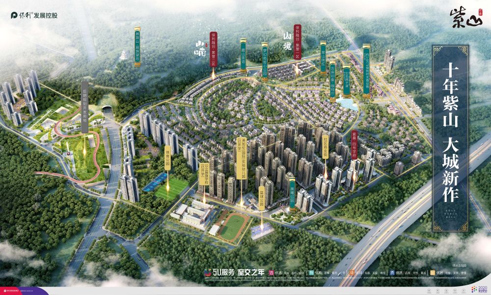 保利紫山是保利地产华南公司的又一千亩力作,保利紫山花园。整个紫山项目占地3000亩,容积率为1.27,建筑面积超100万方(.09㎡),规划有别墅、多层洋房、高层洋房、、会所等。 保利紫山国际项目位居广佛两大商圈,周边城镇主干道构成立体交通网。